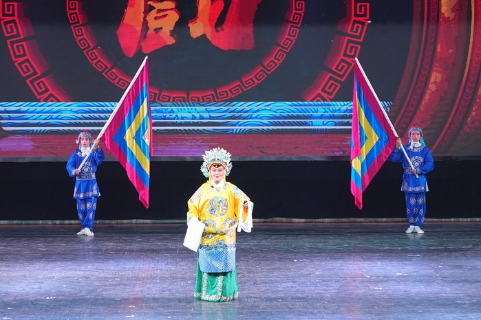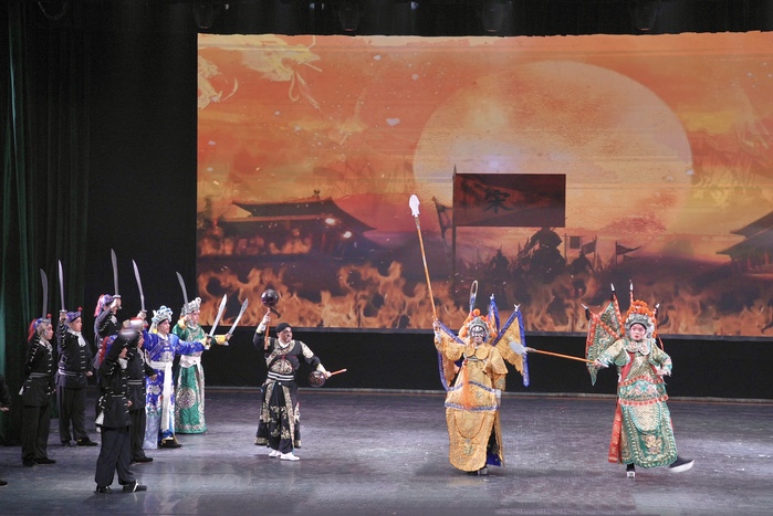 来自五个民族的29名同学,汇报演出了《穆桂英挂帅》《铡美案》《双阳公主》《定军山》《打龙袍》《大登殿》《杨门女将·探谷》《珠帘寨》《昭君出塞》《乾元山》《打焦赞》《挑滑车》等十二部经典戏曲的精彩选段和京剧歌曲《我是中国人》,唱念做打、干净利落,一招一式、有板有眼,唱腔优美动听,鼓点扣人心弦,生动演绎出“巾帼不让须眉”的女将军穆桂英、大公无私的包拯、勇猛果敢的黄忠、忠贞爱国的王昭君等人物形象。